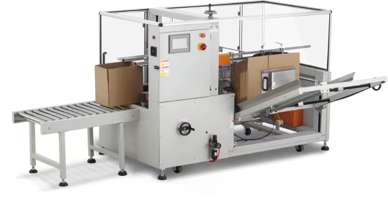 本公司新一代自主生产设计的开箱机产品,新版根据市场需求,在更换胶带区域加装了防护门,开门即可换胶带,更方便,省心;该机采用严格的生产工艺流程,立式开箱速度达到10-12箱/分钟,吸取纸箱并成型,并加装了断胶带、无胶带自动报警提示功能,该款开箱机已广泛用于食品、医药、饮料、烟草、日化、电子等各行业。