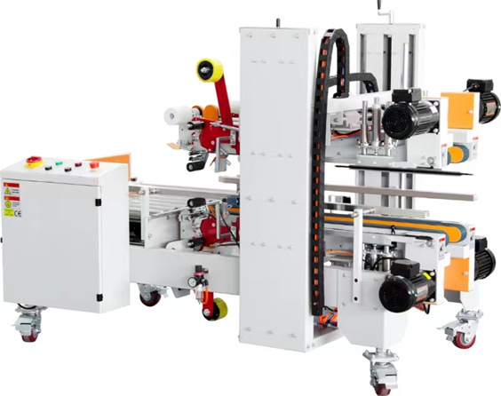 自动四角边封箱机是纸箱经前段封箱机中间上下封口后,进入90度转角机构,光电感应后由推 箱板推入角边封箱机,同时封纸箱上下四个角边,封箱效率快,两排毛刷同时抚平胶带,使其紧紧 贴住纸箱,折角无褶皱,美观牢固,适合对外包装要求比教高的客户和厂家。特别是出口产品和食 品行业,广泛应用于食品、医药、饮料、烟草、日化、汽车、线缆、电子等行业。